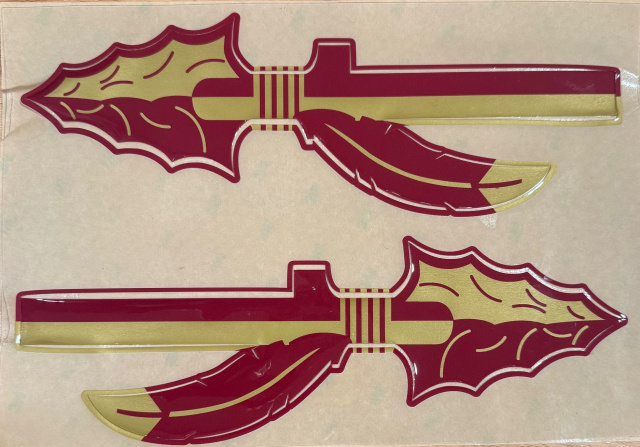 We offer full decal packages. To include side decals , stripes, front and rear bumpers, . We also offer award decals, rear and side player numbers, Pennant Decals, Over sized Decals, Chrome Decals. Contact us to design your new logo and Helmet.